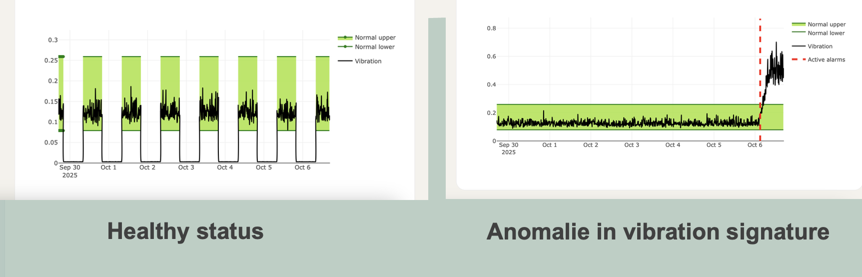Grâce à des capteurs intelligents et à une surveillance continue, les installations sont également surveillées automatiquement, indépendamment des contrôles périodiques. La détection précoce des anomalies garantit un fonctionnement stable, une plus grande continuité et rend les arrêts imprévus obsolètes.