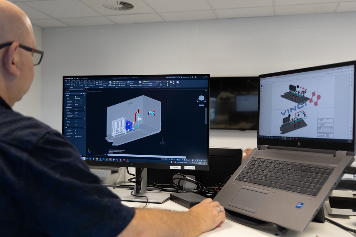 Onze experten maken gebruik van gespecialiseerde software zoals EPLAN om de elektrische plannen uit te werken en Caneco om de gewenste leidingdiameters te berekenen. Verder Maken we ook gebruik van Hysopt, een tool die een voorspelling maakt van de installatie over een termijn van 10 of 20 jaar. Zo kunnen verschillende configuraties vergeleken worden op energieverbruik en total cost of ownership.